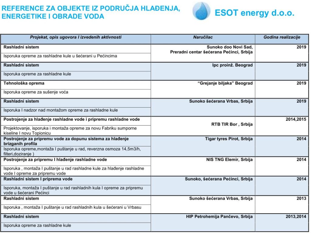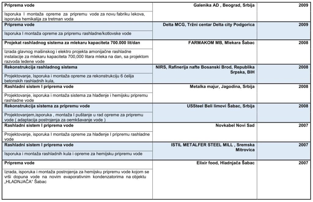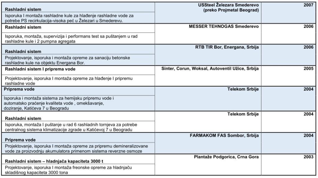 U nastavku se nalazi naša referenc lista sačinjena od  odabranih referenci koje predstavljaju širok spektar naših kupaca i pokazuju obim specijalizovanih zahteva koje moramo ispuniti.